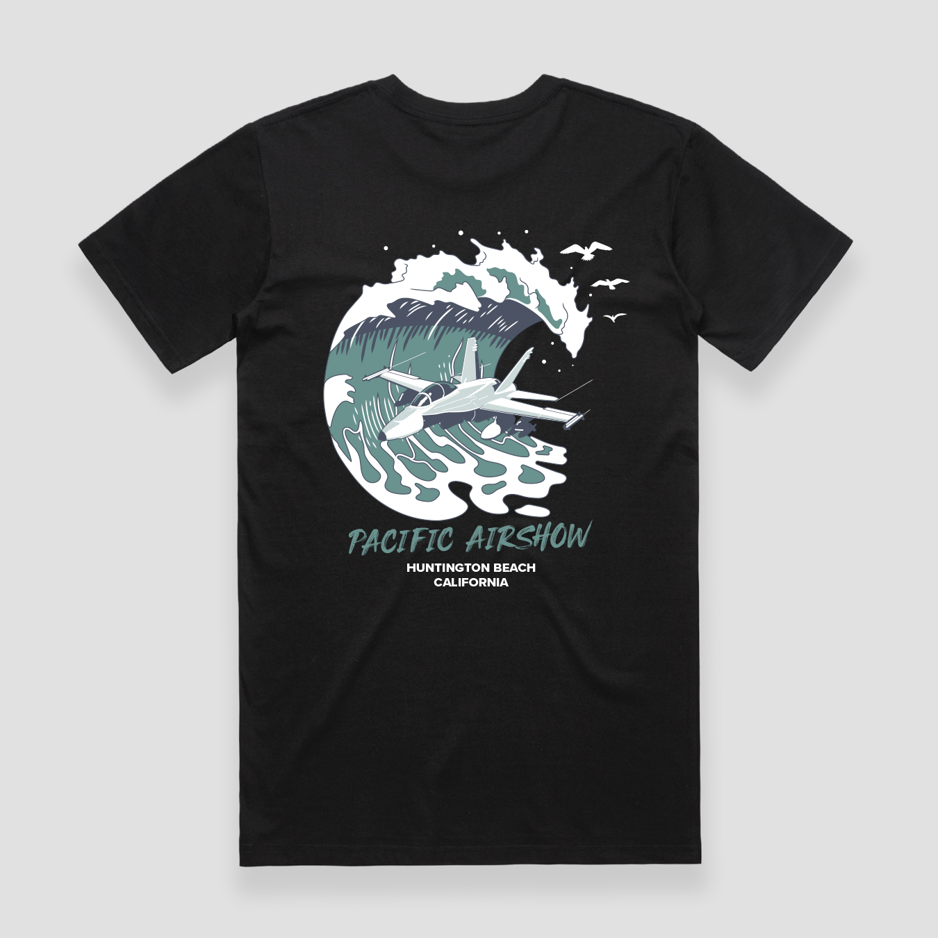 Our jets LOVE to ride the Waves! The Jet and Wave Tee captures the perfect harmony of speed and surf. Designed by CHOMP Brand and featuring sleek jet imagery alongside a classic HB wave, it celebrates the thrilling energy of flight meeting the rhythm of the sea - a true reflection of the Pacific Airshow’s unique coastal vibe!